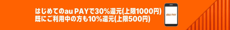 初めてのau PAY(ネット支払い)決済でau PAY残高最大30%還元