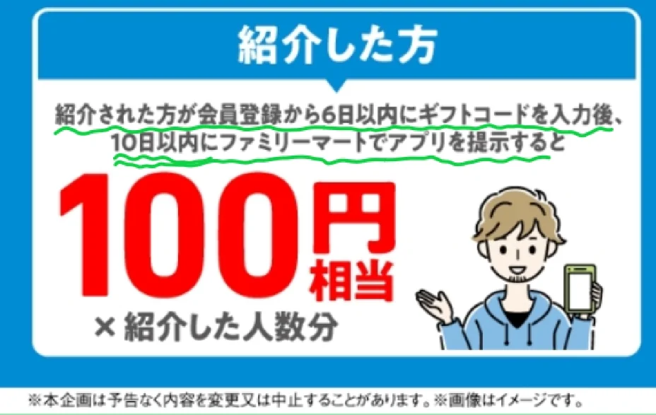 そんな感じで〈ファミペイのインストールついでに紹介コード(ギフトコード)を入力すると100円分のポイントがもらえます〉という話でした。
