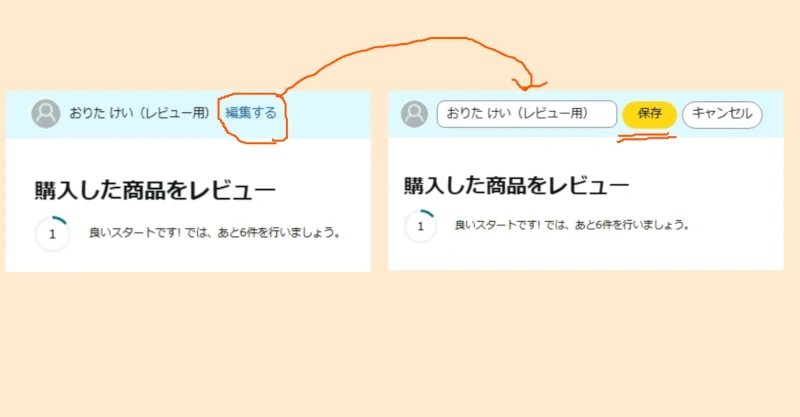 それでもまだ本名が入ったままで変更されてないぞって場合は、「購入した商品のレビュー」ページに移動して、こちらで名前の変更を行ってください。