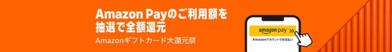 期間中のAmazon pay利用分を抽選で還元する「Amazonギフトカード大還元祭キャンペーン」が3月~4月で開催されています。恒例のキャンペーンですね。