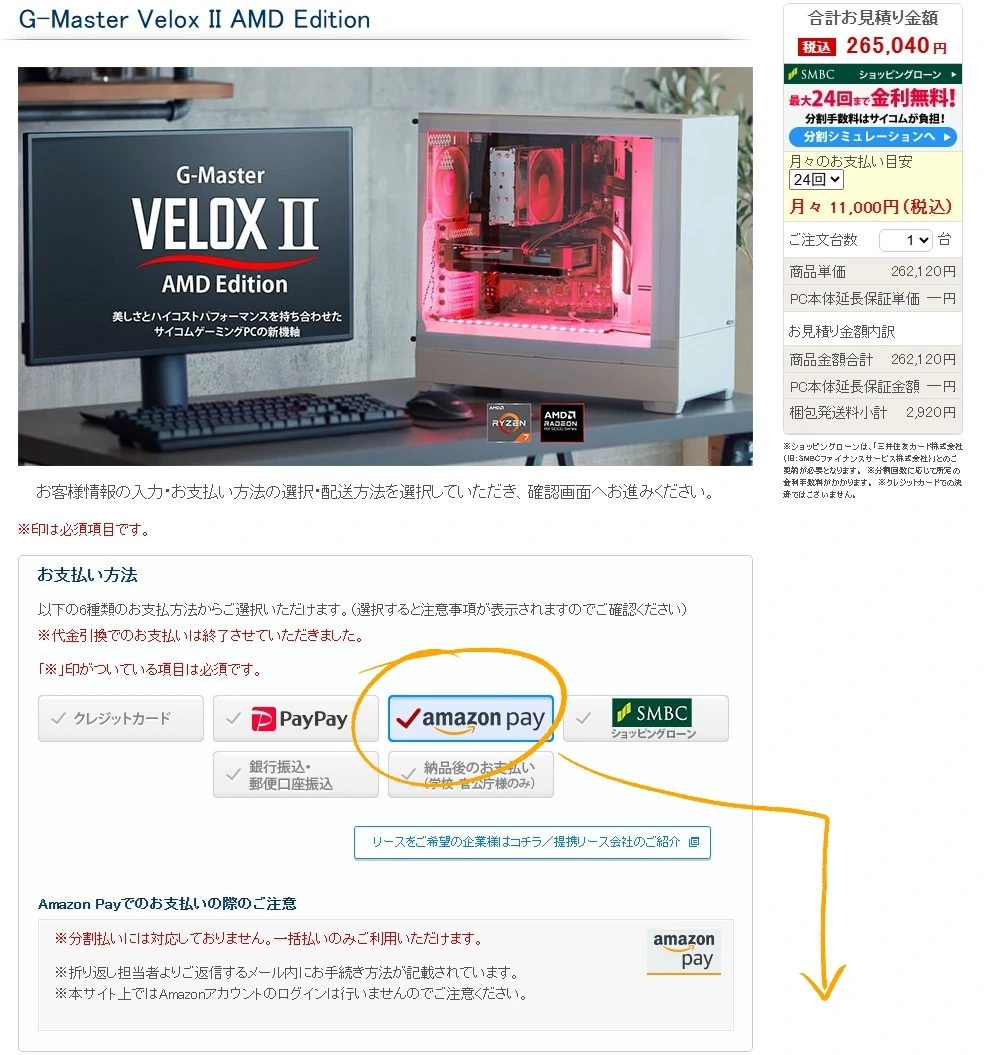 BTOのサイコムで新PCを注文。Amazonギフトカード払いが可能ならそう書いててほしかった