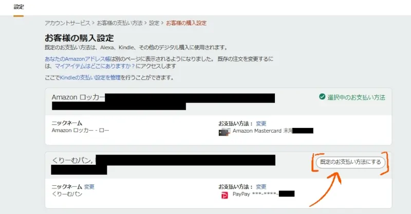 手順2:デフォルトの購入方法をPayPayに設定する