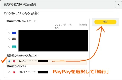 - デフォルトの支払い方法をPayPayに設定した