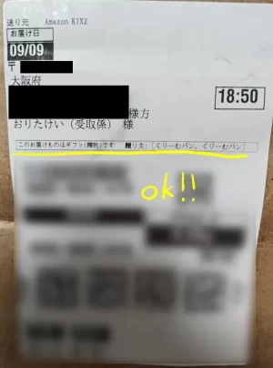 こちらほしい物リスト経由の配送ラベル。受取人にはこんな感じでギフトが届きます。